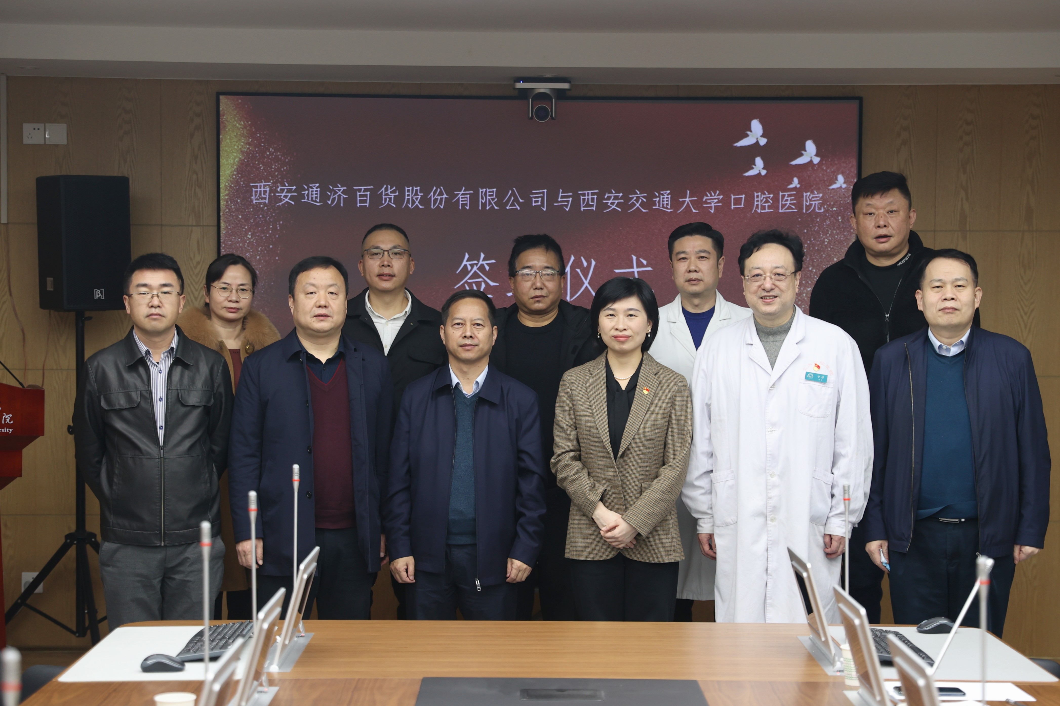 1月9日下午,西安通濟百貨股份有限公司與西安交通大學口腔醫院舉行東方商城招租合作簽約儀式。西安交通大學口腔醫院黨委書記滕晶,西安商貿物流集團黨委委員、副總經理雷春龍,以及雙方有關領導出席本次簽約儀式。