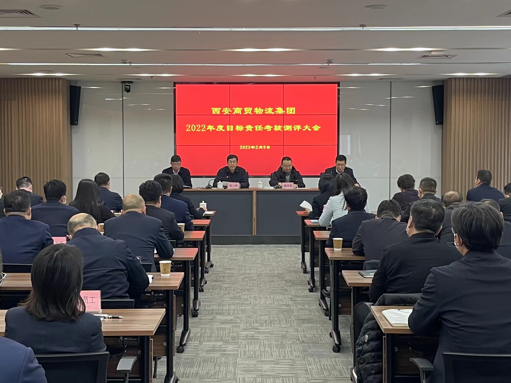按照全市目標責任年終考核工作部署,2月9日下午,西安商貿物流集團召開2022年度目標責任考核測評大會,市第十考核組組長、市國資委黨委書記、主任劉三民一行10人蒞臨。會議由黨委書記、董事長曹兆民主持,集團領導班子,總部全體干部員工,各單位黨政主要負責同志及職工代表共50余人參加。