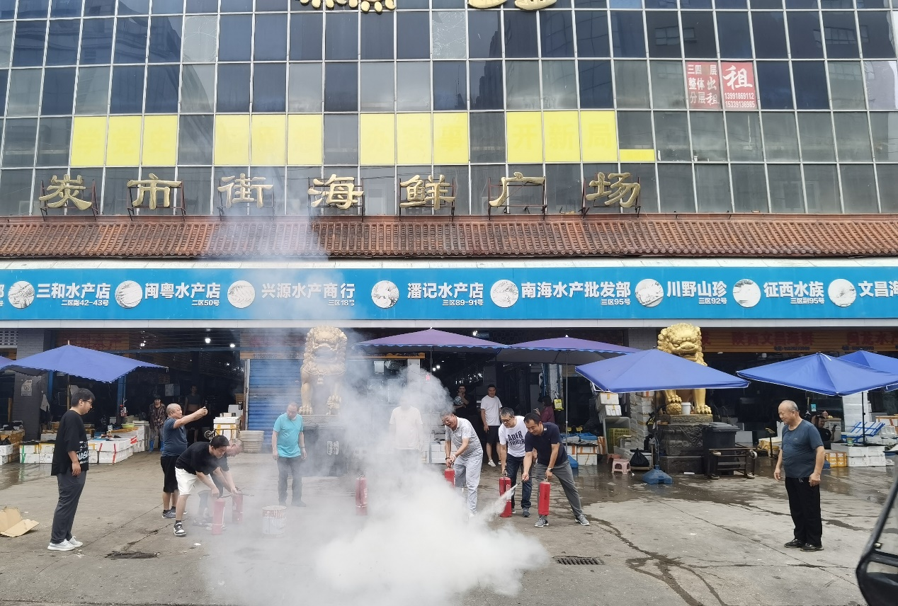 炭市街水產(chǎn)市場(chǎng)具有經(jīng)營(yíng)單位種類復(fù)雜、人流密集、消防隱患風(fēng)險(xiǎn)較高的特點(diǎn)。在演練現(xiàn)場(chǎng),安全管理人員向各商戶代表詳細(xì)介紹了滅火器材的使用方法及操作要領(lǐng)。參練人員在安全員的指導(dǎo)下,分批有序使用滅火器材進(jìn)行了現(xiàn)場(chǎng)滅火演習(xí)。